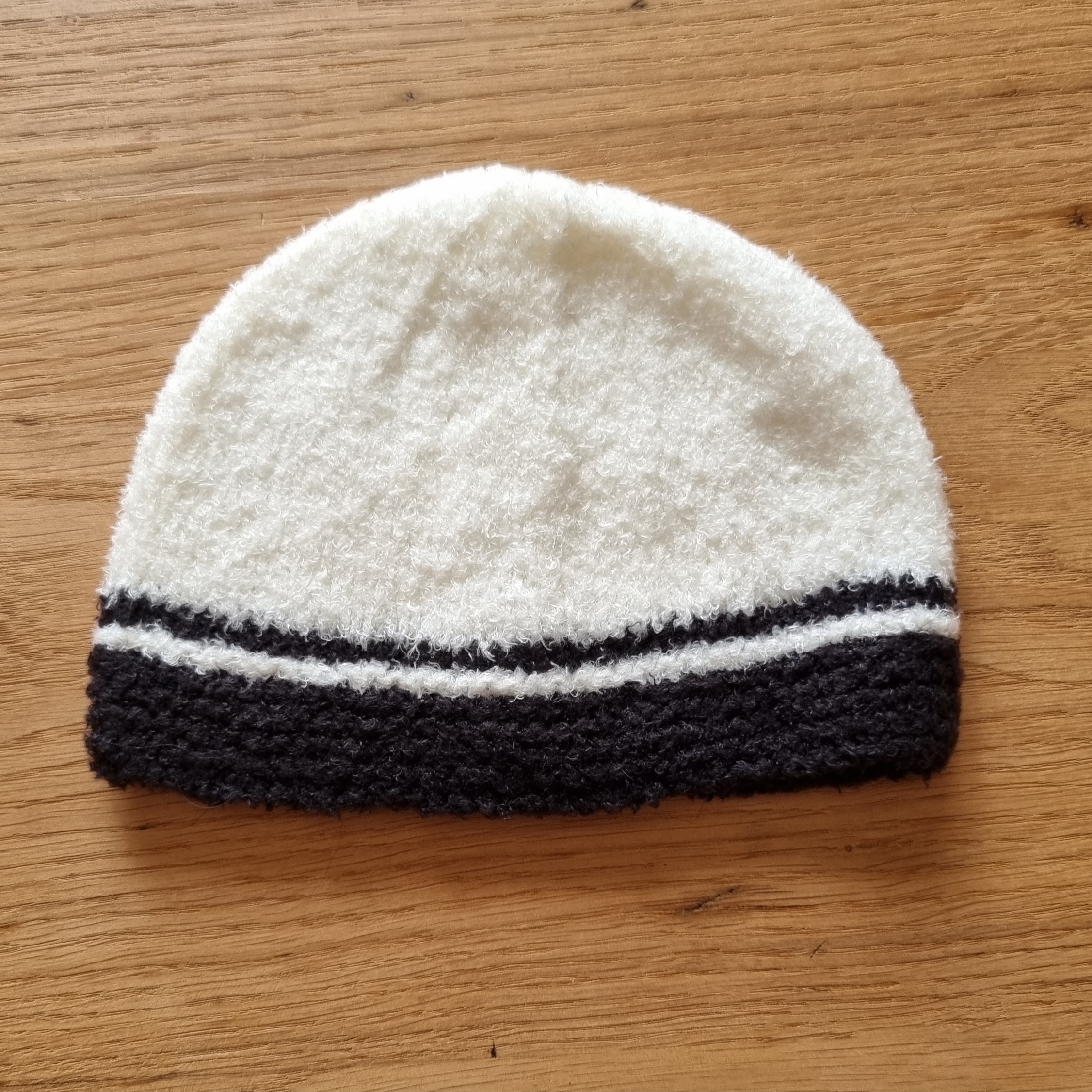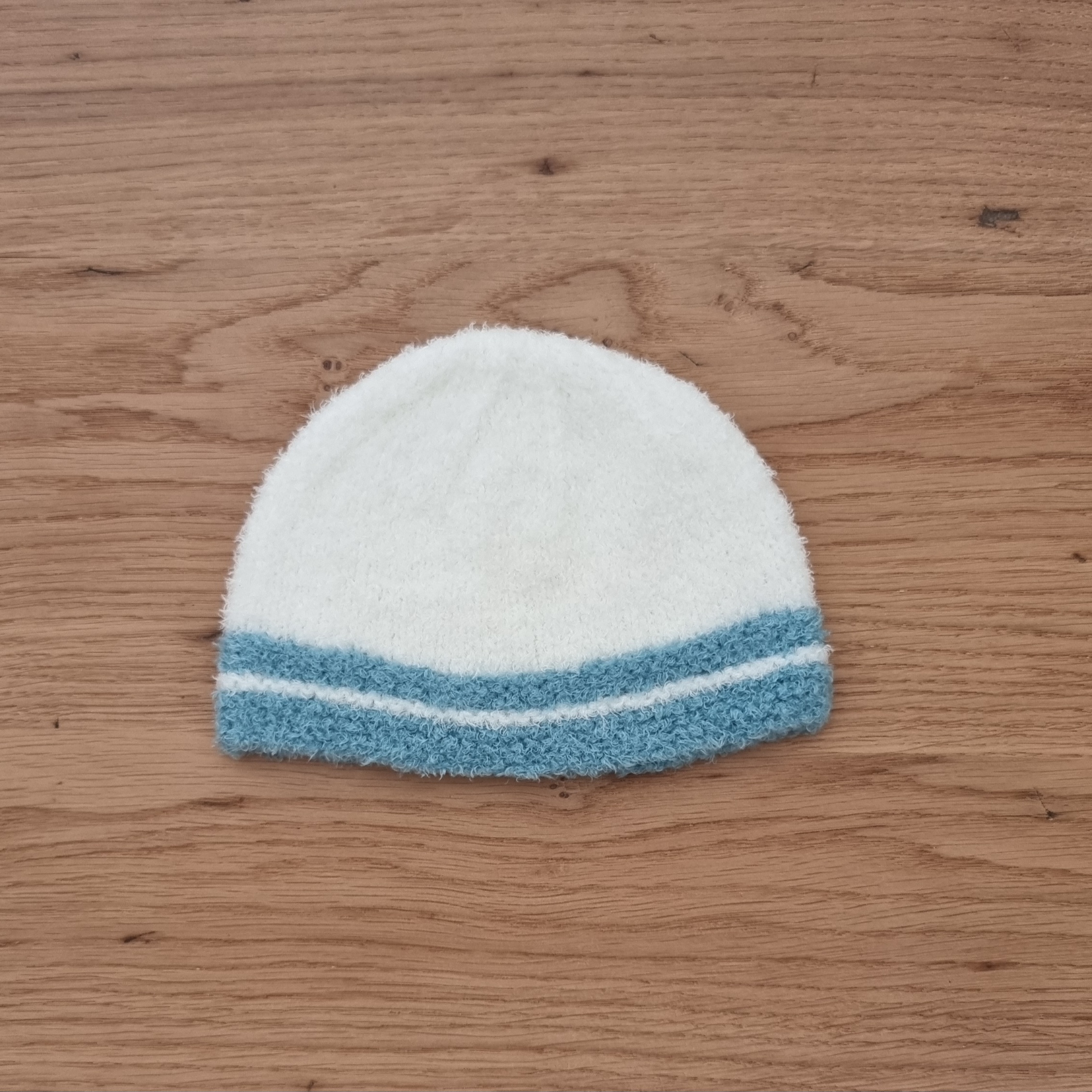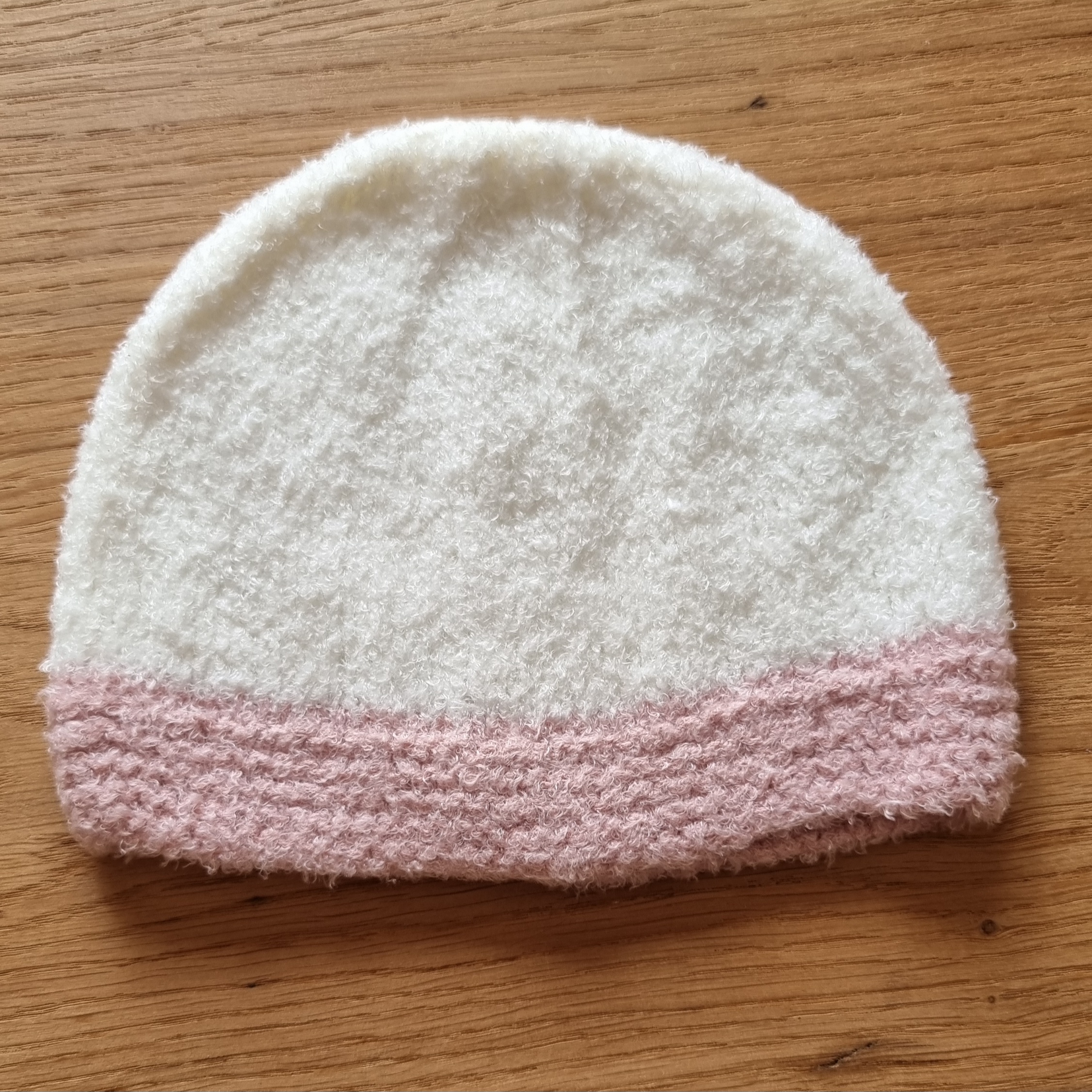 Bonnet tricoté à la main au point mousse dans une laine très douce.